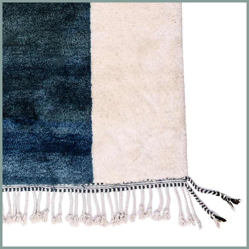 Shades of cream color to highlight the green pattern of this Beni Mrirt rug, a very modern concept that adapts wonderfully to all our classic, contemporary and modern interiors.