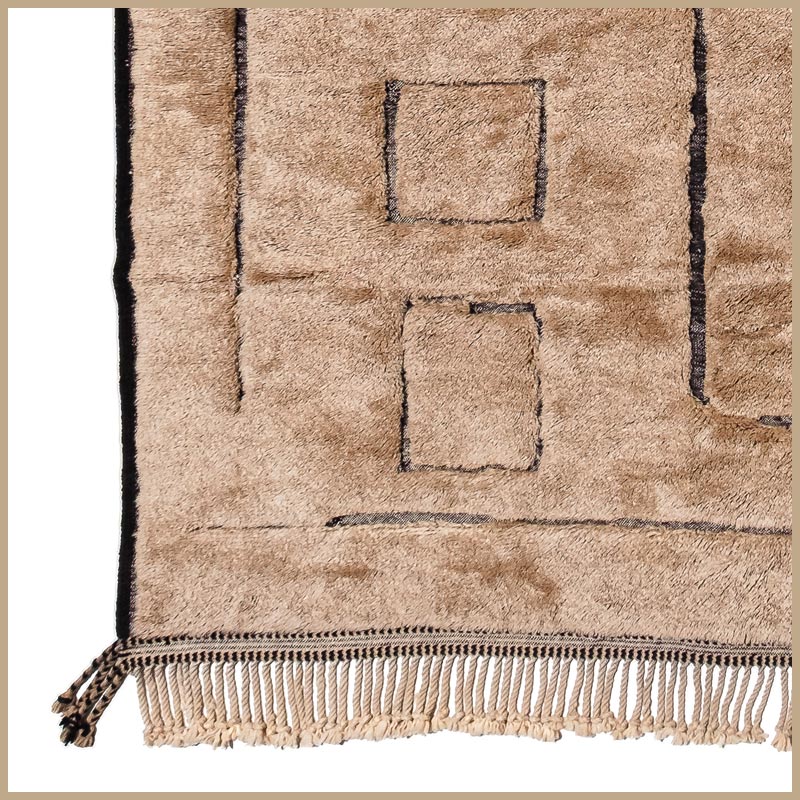 Des nuances camel pour souligner les motifs de ce tapis Beni Mrirt, un concept très artistique s'adaptant à merveille à tous nos intérieurs classiques, contemporains et modernes.