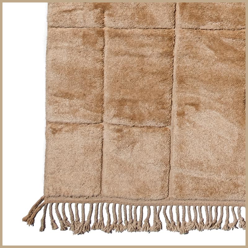 Un design géométrique mettant en valeur la profondeur de ce très beau tapis. Un look moderne réalisé selon les traditions ancestrales des tisseuses de la tribu Beni Mrirt. Ses nuances de couleurs camel s’adapte parfaitement à tous les intérieurs.