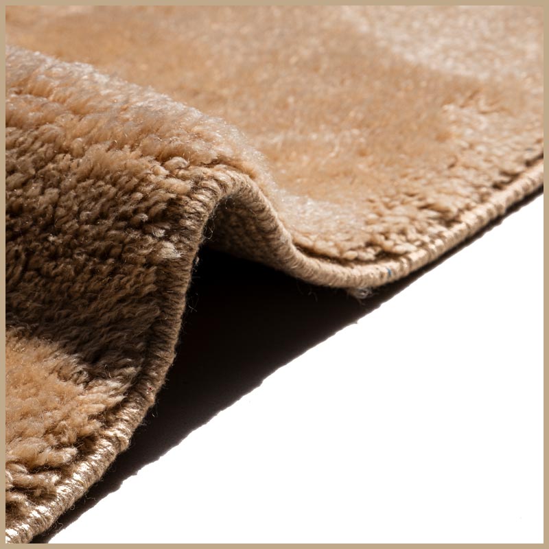 Une réalisation 100% fait main, en points noués sur une chaine (trame) en points tissé (kilim) en laine vierge tressée très dense qui lui donne une formidable résistance et une douceur exceptionnelle.